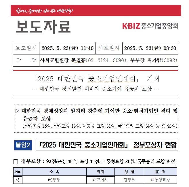 2025년 중소기업인대회 대통령상 수상